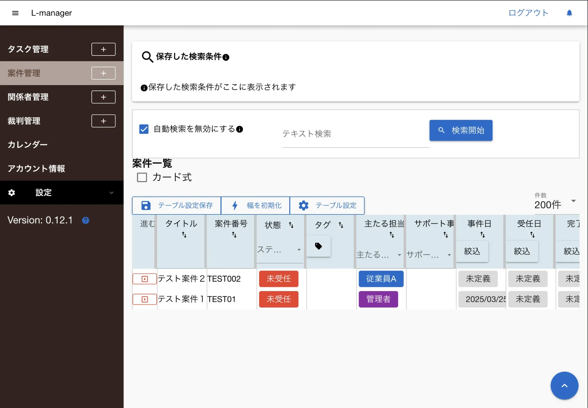 登録されている案件を見るには、左メニュー「案件管理」をクリックします。