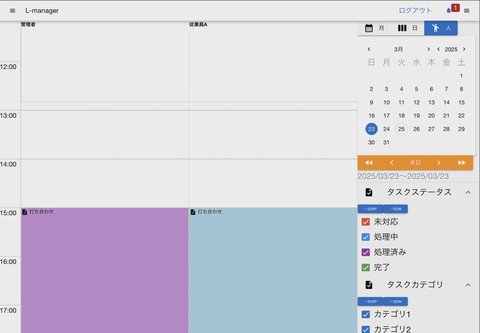 ユーザカレンダーは縦軸にスタッフ、横軸に時間を置いた少し特殊なカレンダーです。