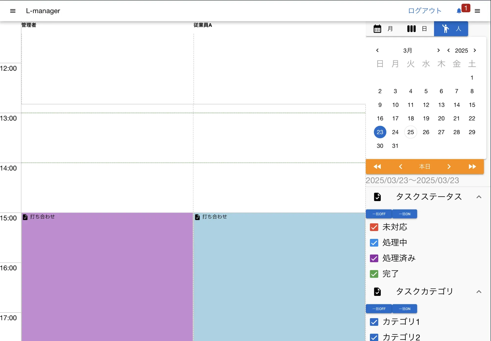 ユーザカレンダーは縦軸にスタッフ、横軸に時間を置いた少し特殊なカレンダーです。