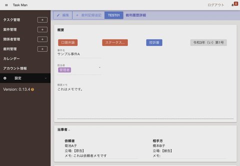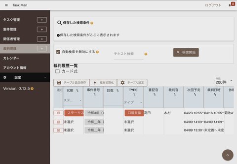 登録されている裁判を見るには、左メニュー「裁判管理」をクリックします。