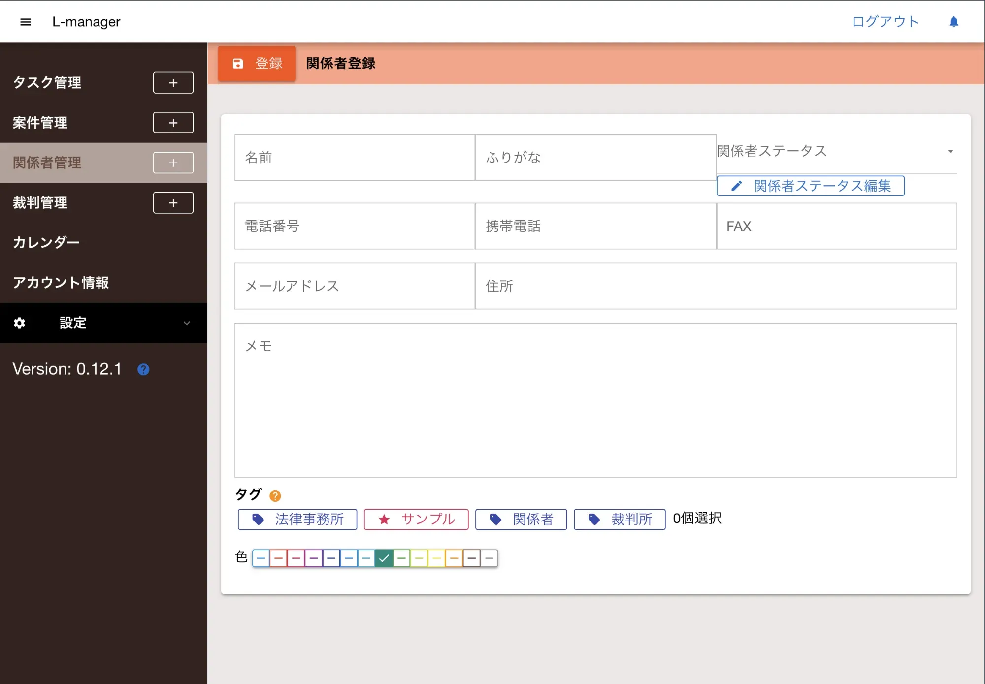 関係者を追加するには、左メニュー「関係者管理」の中にある「+」ボタンをクリックします