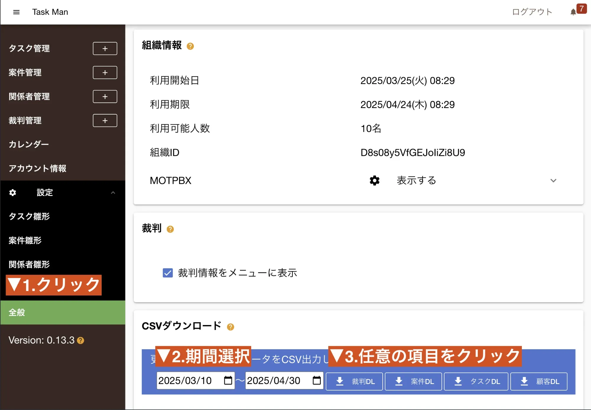 - ダウンロードする期間を選択し、任意のボタンをクリック