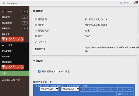 ONにすると、裁判管理のセクション左メニューに追加されます。