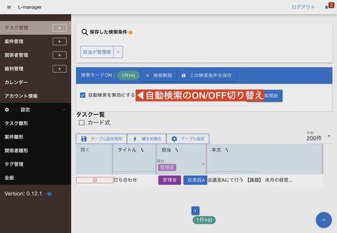 自動検索とは、検索条件を変更したタイミングで自動で再検索を行う機能です。初期値はOFFです。
