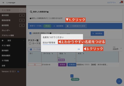 検索条件を保存することで、次回からワンクリックで同じ検索が可能です。