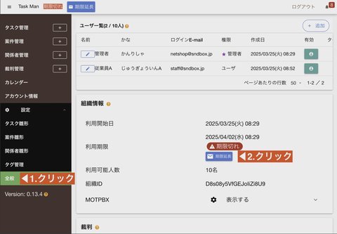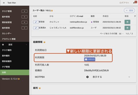- 利用期限の下にある「期限延長」ボタンをクリック