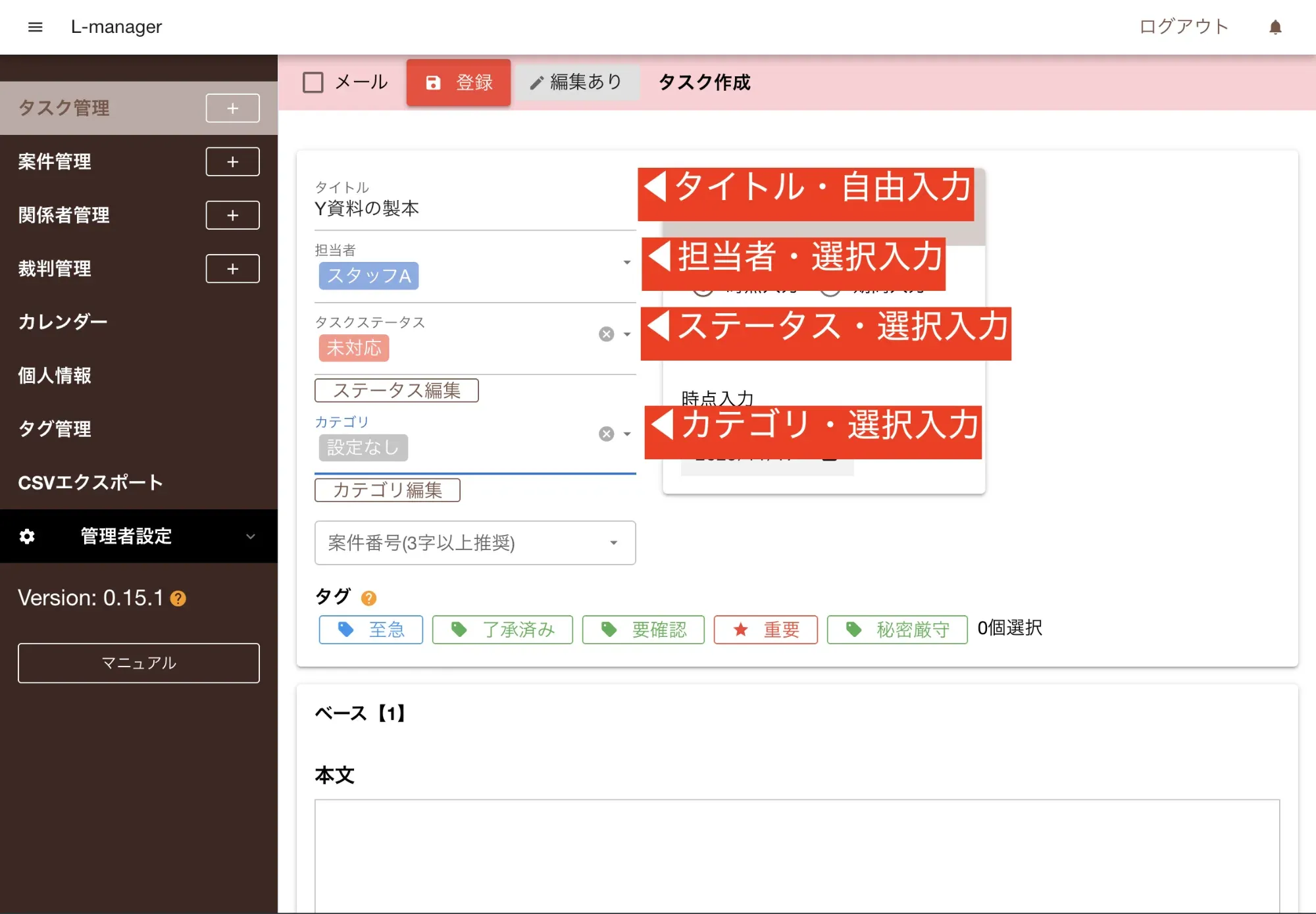 タスク登録
