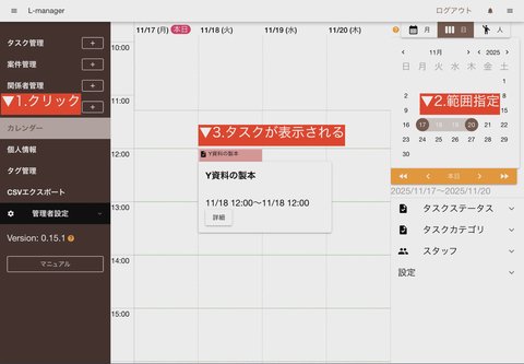 期限・期間を設定しない場合は、「期限・期間を設定しない」をクリック(この場合、カレンダーにタスクは表示されません)