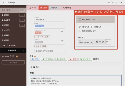 期限・期間を設定する場合には、期限入力・期間入力のいずれかを選択し、期限・期間を入力