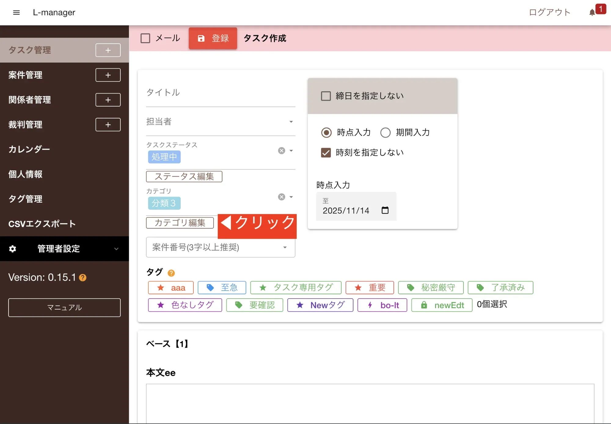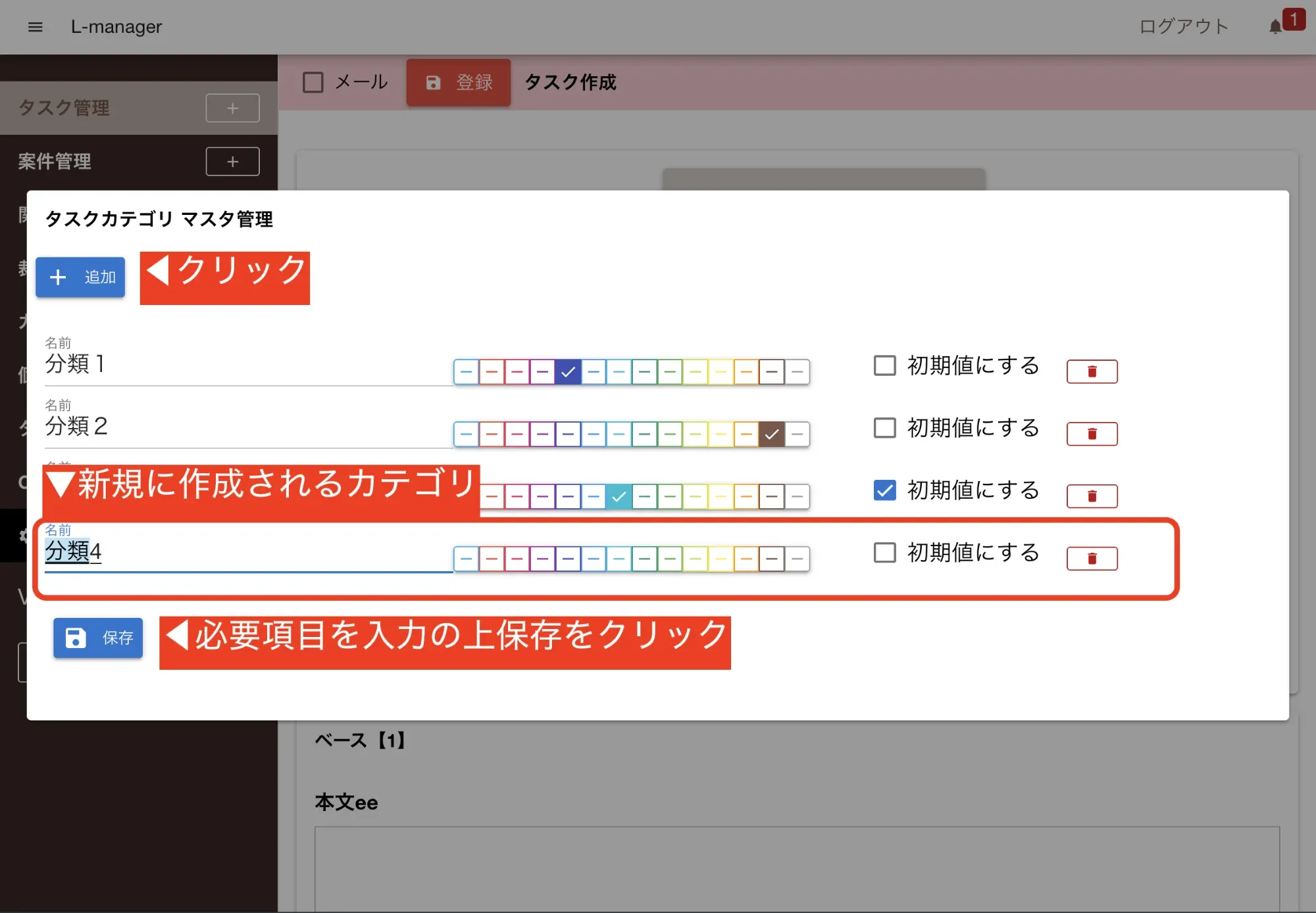カテゴリを編集する場合には、「名前」や「色」を選択のうえ、下の「保存」をクリック