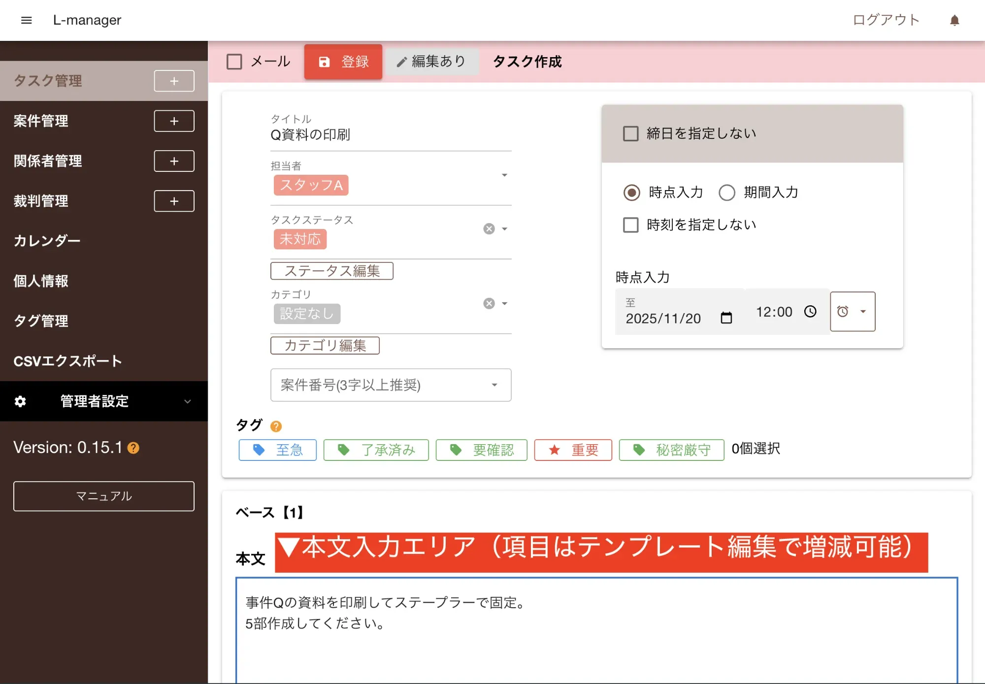 タスク登録