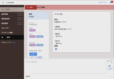 担当者の変更やタスク内容自体の編集をすることが出来ます。