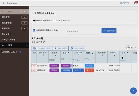登録されているタスクを見るには、左メニュー「タスク管理」をクリックします。