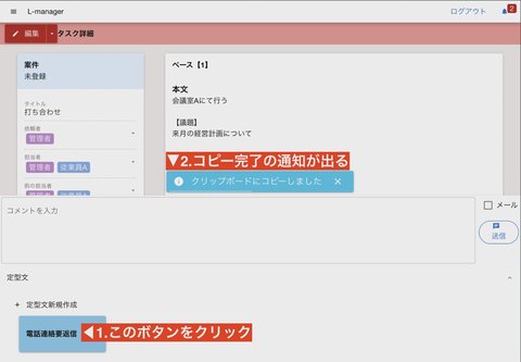 定型文のボタンをクリックするとクリップボードに内容がコピーされます。コメント欄に手動でペーストし、必要に応じて内容を修正して下さい。